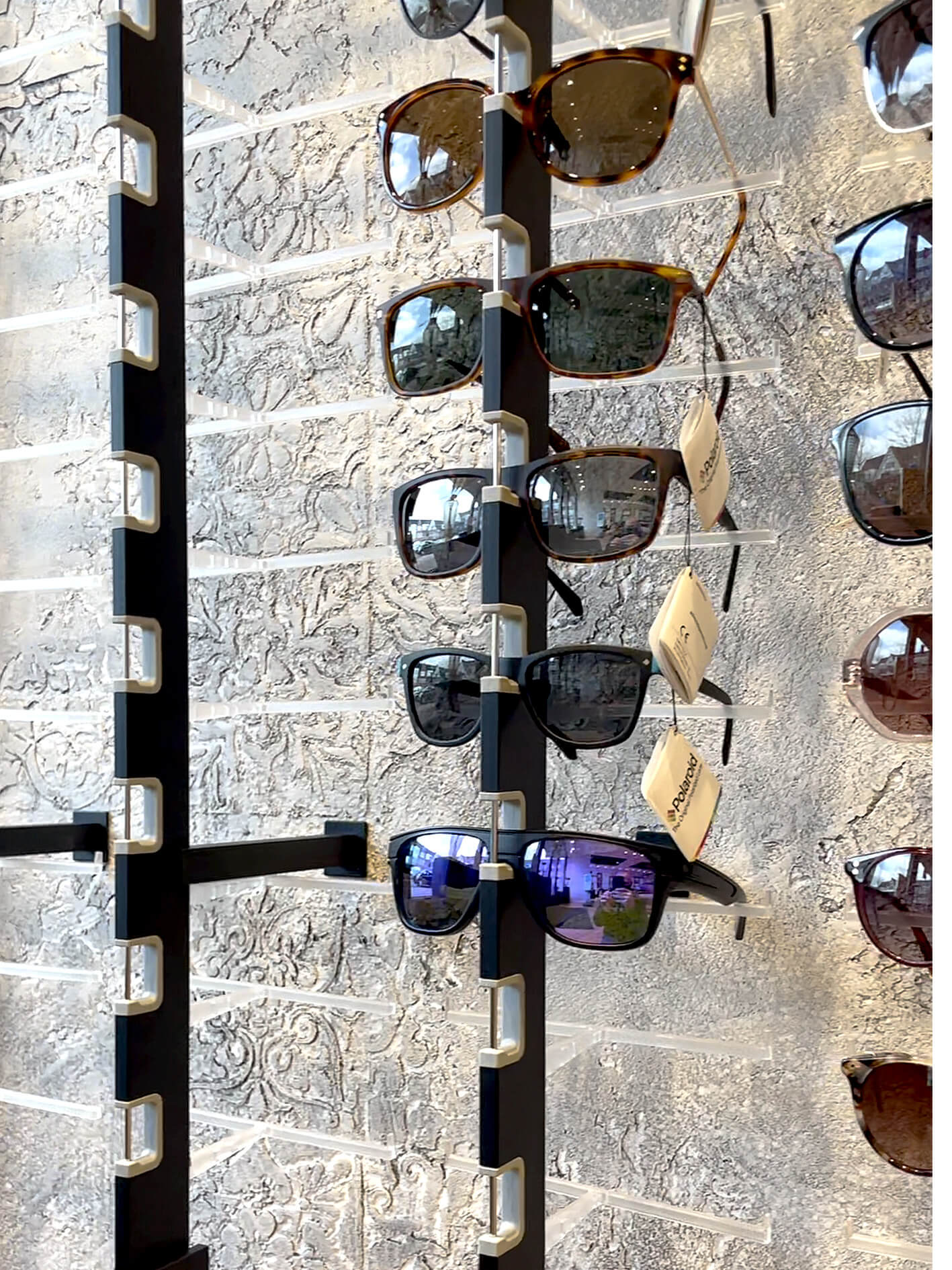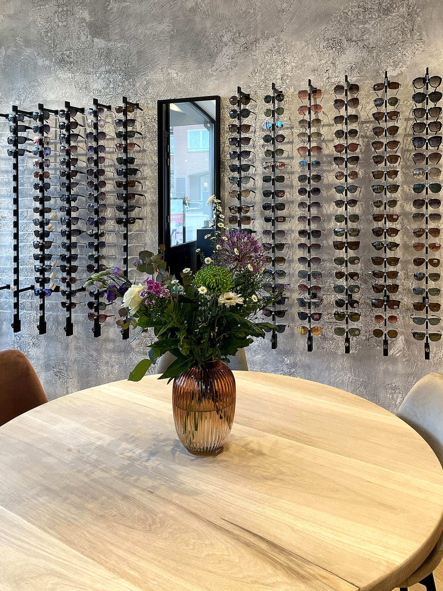 Bij Van den Bosch Brillen & Lenzen Nieuwleusen zijn wanden en balie zijn bekleed met Novacolor Archi+Big, Archi+Concrete.